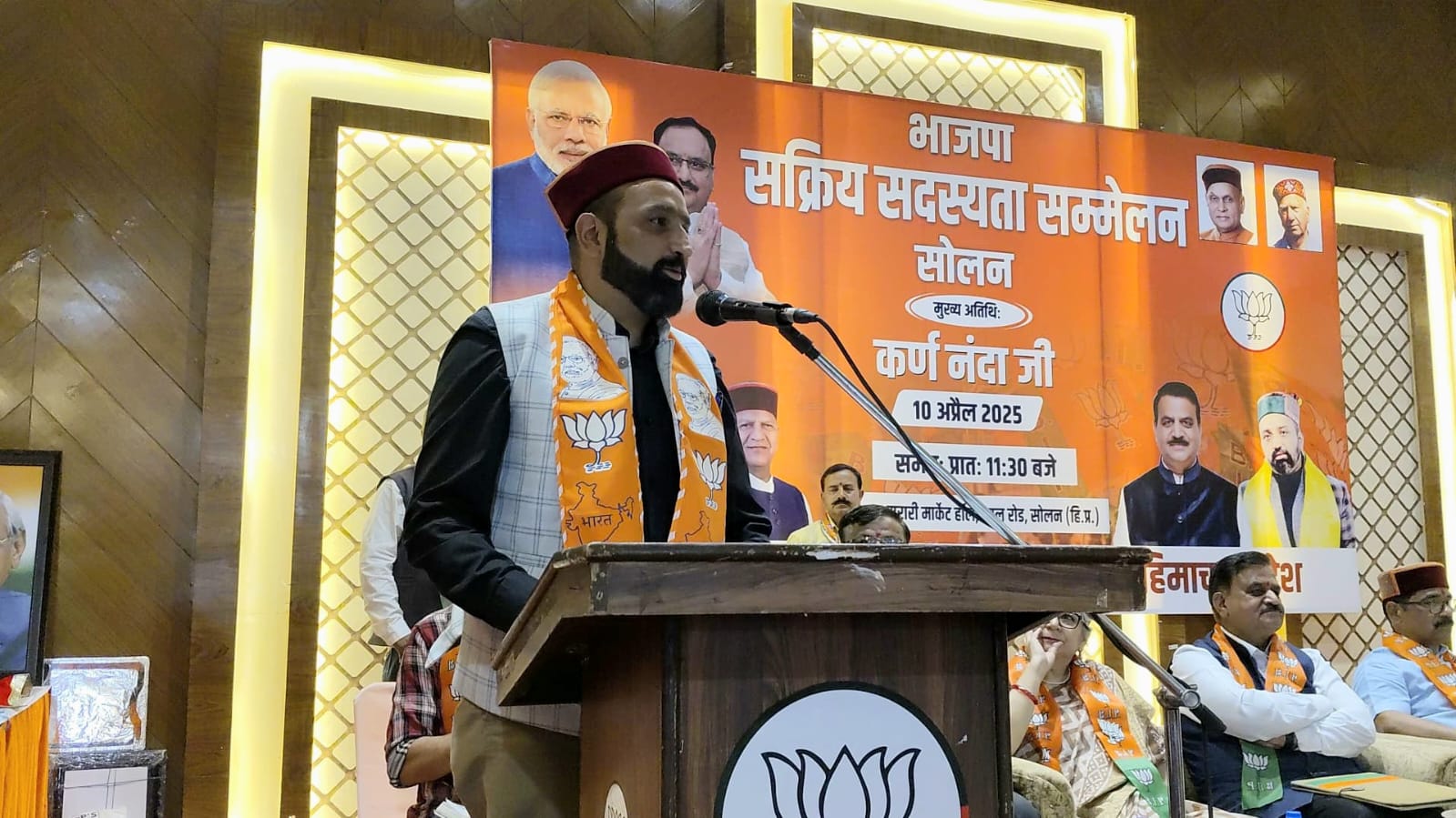 कर्ण नंदा ने सम्मेलन को संबोधित करते हुए कहा भाजपा का इतिहास एवं विकास यात्रा कोई आम विषय नहीं, बल्कि एक संघर्ष यात्रा है। वो भाजपा है जिसने भारत की राजनीति में एक सिद्धांतवादी विचारधारा की शुरुआत की अपने अडिक सिद्धांतों से दशकों की रीड विहीन राजनीति को बदला, इसलिए तो पूरा देश भाजपा के बारे में कहता है कि “यह जो कहते हैं वह करके दिखाते हैं”। सत्ता की आंच जब सिद्धांतों तक आने लगी तो श्यामा प्रसाद मुखर्जी और अटल बिहारी वाजपेयी ने सत्ता को ठोकर मार दी लेकिन सिद्धांतों से कोई समझौता नहीं किया और 6 अप्रैल 1980 को पंचनिष्ठाओं के साथ भारतीय जनता पार्टी की स्थापना हुई, वो दौर जब कांग्रेस पूरी ताकत के साथ विपक्ष पर प्रहार कर रही थी तब भाजपा के पास सिर्फ उसके सिद्धांत थे जो भाजपा को प्रेरणा और शक्ति प्रदान कर रहे थे। दशकों के संघर्ष के बाद जबजब भाजपा को मां भारती की सेवा का मौका मिला तब-तब भाजपा की सरकारों ने राष्ट्र प्रथम के साथ अंत्योदय के संकल्प को सिद्धि तक पहुंचाया। राम मंदिर का निर्माण हो या कश्मीर से धारा 370 का खात्मा तीन तलाक का अंत हो या वक्फ संशोधन बिल सबका साथ सबका विकास के मार्ग पर चलते हुए भाजपा ने हमेशा अपने विज़न को स्पष्ट रखकर देश की नीतियां तैयार की ।
