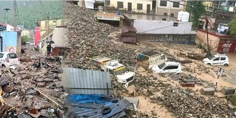 जम्मू कश्मीर में बादल फटा,मलवे में दबी गाड़िया और मकान।