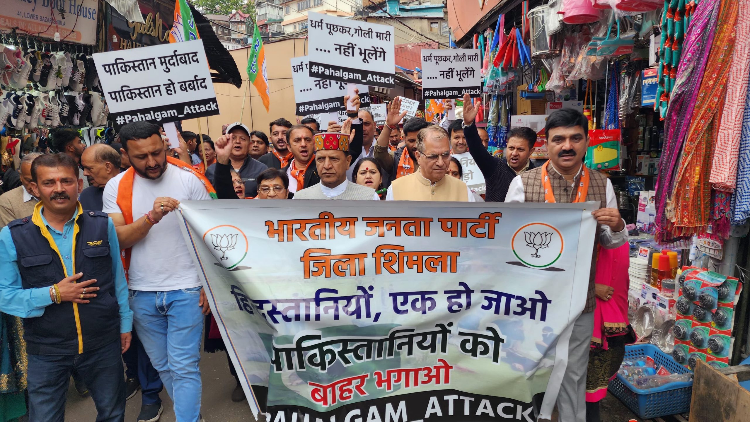 हमीरपुर। जम्मू-कश्मीर के पहलगाम में हुए आतंकी हमले को भारतीय जनता पार्टी के नेताओं व कार्यकर्ताओं ने कायराना हरकत करार देते हुए गांधी चौक पर जोरदार प्रदर्शन किया। इस दौरान पाकिस्तान के खिलाफ जमकर नारेबाजी की गई। जिला भाजपा की तरफ से इस प्रदर्शन का आयोजन किया गया। कार्यक्रम में सांसद अनुराग ठाकुर पहुंचे तथा उन्होंने कार्यकर्ताओं को संबोधित किया।उन्होंने पहलगाम में हुए आतंकी हमले को निंदनीय करार दिया। इस दौरान कहा गया कि कुछ दिन पूर्व पाकिस्तान द्वारा पल्लवित, पोषित एवं समर्थित आतंकवादियों ने जम्मू-कश्मीर घाटी के पहलगाम में एक अत्यंत घृणित, कायराना एवं हृदय को झकझोर देने वाली हरकत करते हुए 27 निर्दोष भारतीयों को उनके धर्म के आधार पर मारा है। इस हरकत को पाकिस्तान की खुफिया एजेंसी आईएसआई एवं पाकिस्तानी फौज के इशारे पर अंजाम दिया गया है। इस दौरान उपायुक्त हमीरपुर को भी ज्ञापन सौंपा गया। ज्ञापन के माध्यम से प्रदेश में वैद्य व अवैध रूप से रह रहे पाकिस्तानी नागरिकों को प्रदेश से निष्कासित करने की मांग की गई।केंद्रीय मंत्री अनुराग ठाकुर ने कहा कि जहां-जहां कांग्रेस की सरकारें है, वहां पर पाकिस्तानी नागरिकों को शरण देने का कार्य किया जा रहा है। उन्होंने कहा कि हिमाचल कांग्रेस सरकार हाथ पर हाथ धरकर बैठी हुई है। उन्होंने कहा कि हिमाचल जैसे शांतिप्रिय प्रदेश में पहलगाम जैसे माहौल नहीं बनना चाहिए। इसलिए यह सुनिश्चित किया जाना चाहिए था कि यदि कोई पाकिस्तानी नागरिक रह रहा है तो शिनाख्त कर उसे वापस भेजा जाए। उन्होंने पहलगाम आतंकी हमले में मारे गए लोगों के प्रति अपनी संवेदना व्यक्त की।